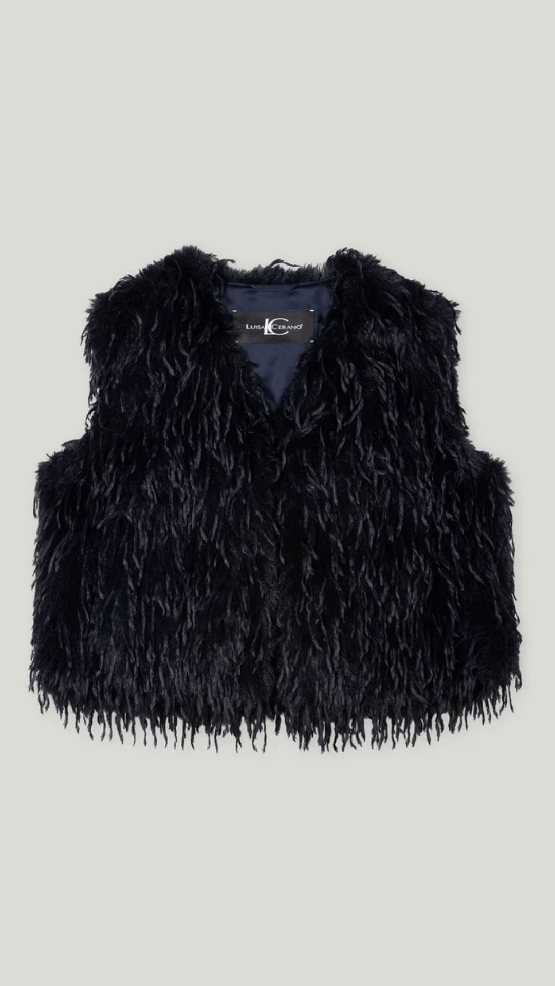 This cropped vest features a hook closure and side pockets. The soft faux fur with a feather effect exudes a touch of boho vibes.