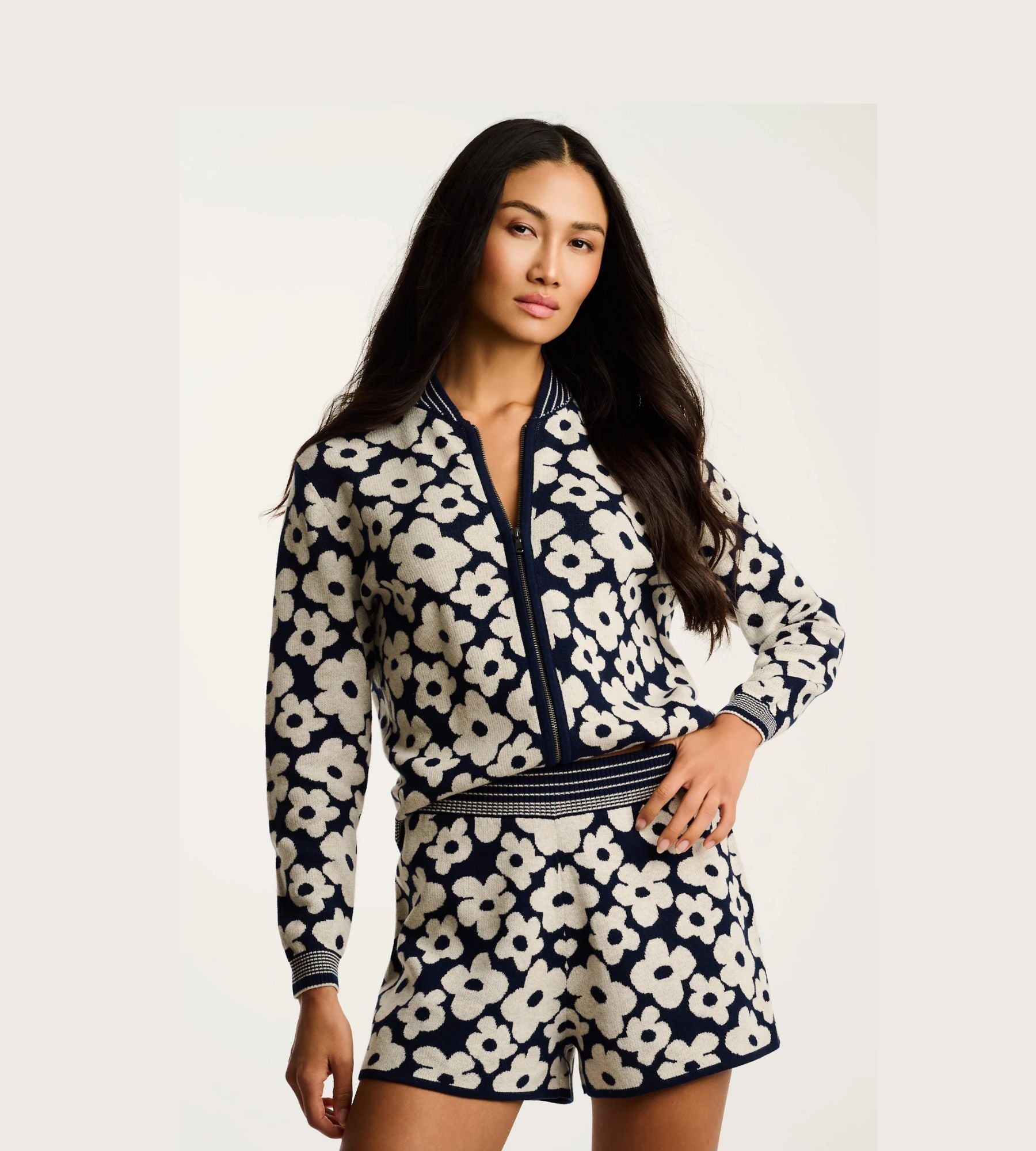 It’s like a bouquet you can wear – the Daisy Dreamer Short brings a bold floral jacquard to a clean, modern silhouette, finished with a striped rib waistband for a sporty pop.