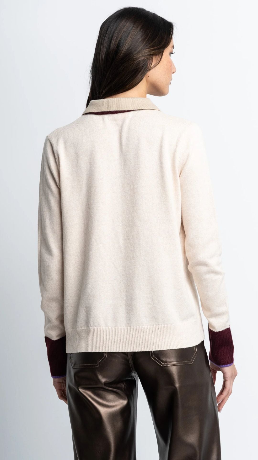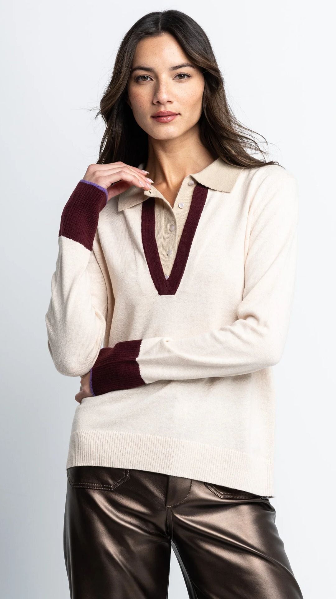 The Double Down style balances classic elements with pops of color. A colorblock V-neck placket, button-up collar, and piped cuff edge lend a polished yet fun touch to its true fit silhouette. Spun from a breathable Cotton-Cashmere blend for effortless layering across seasons.