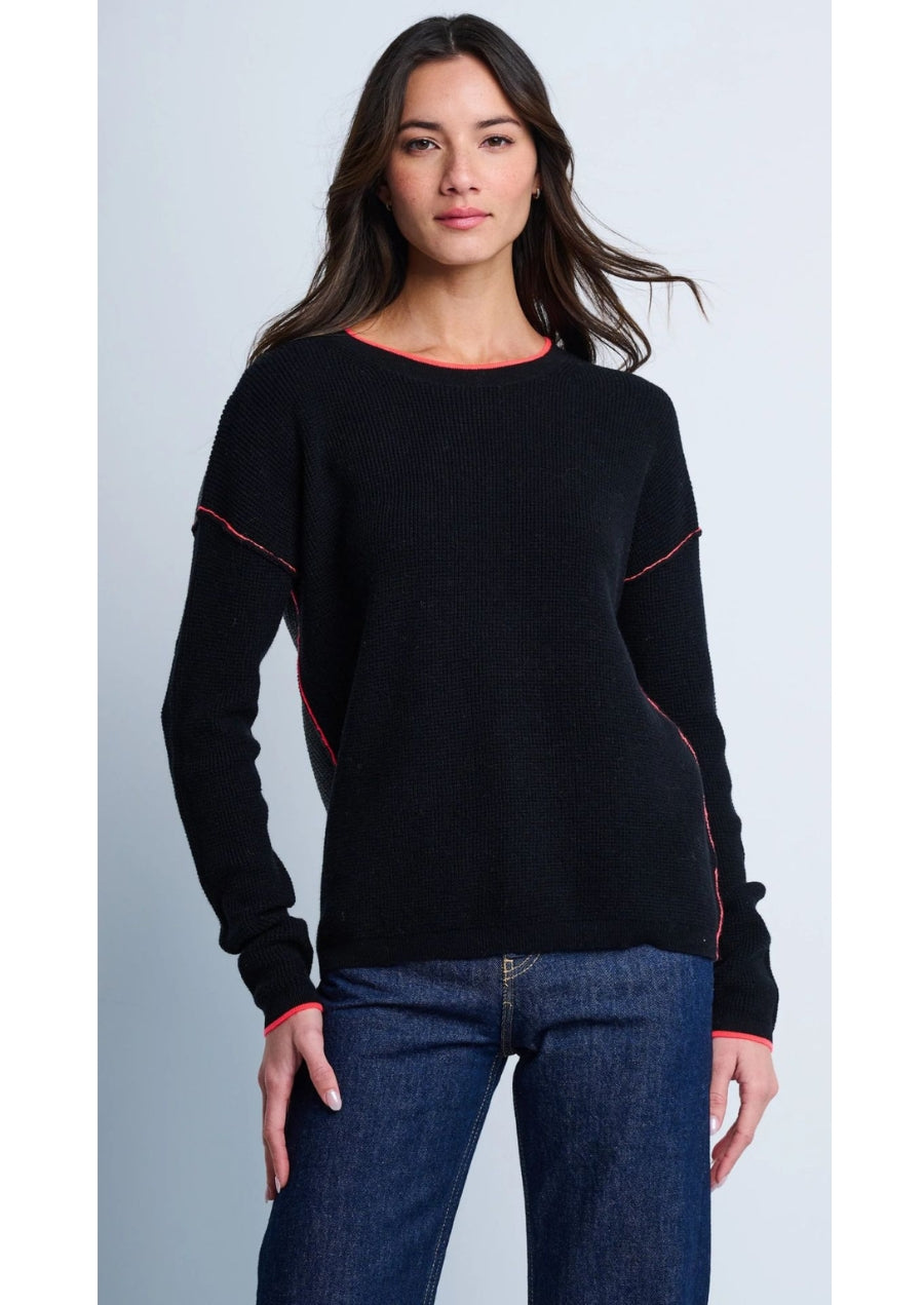An everyday staple with a modern twist, the Around Town sweater is crafted from a soft Cotton-Cashmere blend and features a waffle stitch texture with contrast seam and cuff detailing. Its colorblock back and drop shoulders create visual interest and relaxed appeal. Finished with ribbed edges for a clean fit.