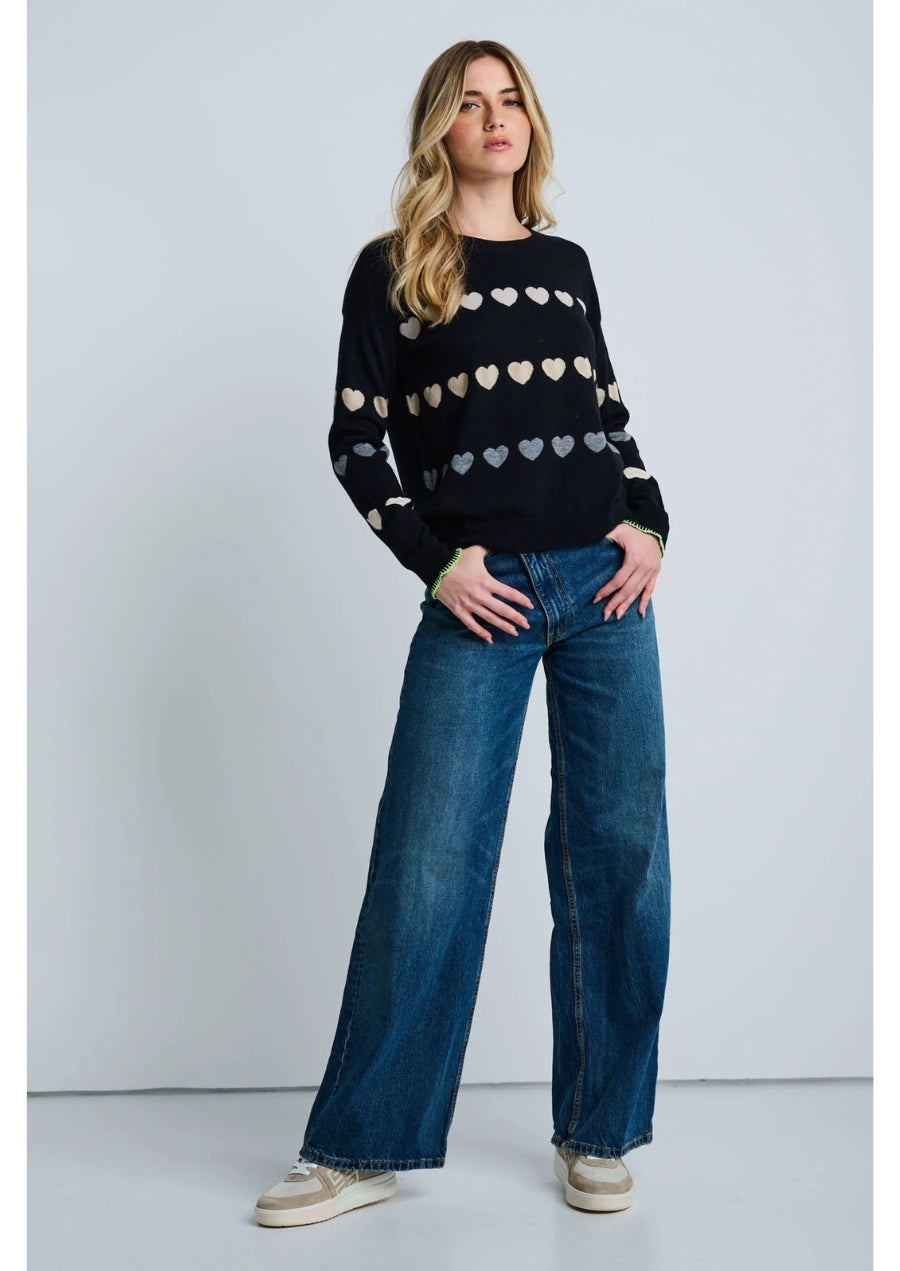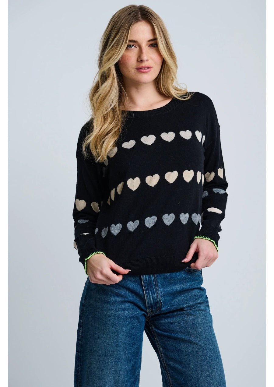 Tracked and found: the Love Track sweater. This true-fit crew neck is framed with heart stripe intarsia and contrast cuff stitching for a polished but comfortable finish. Spun from soft Cotton-Cashmere, you will love wearing it all season long.