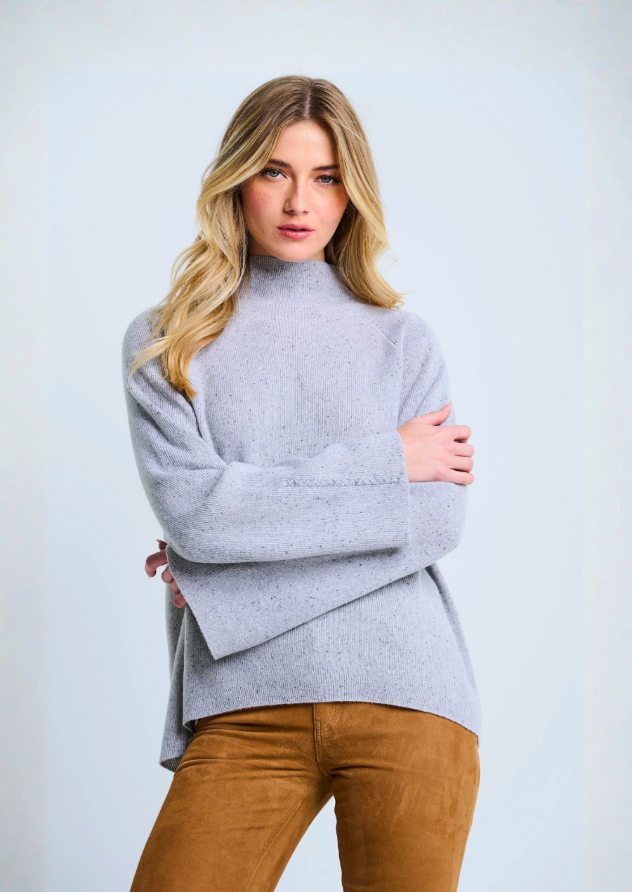 The High Society pullover brings modern polish to cool-weather dressing with its oversized shape and classic rib texture. A high neckline, raglan sleeves, and contrast cuff stitching add dimension to the luxe 100% Cashmere knit.