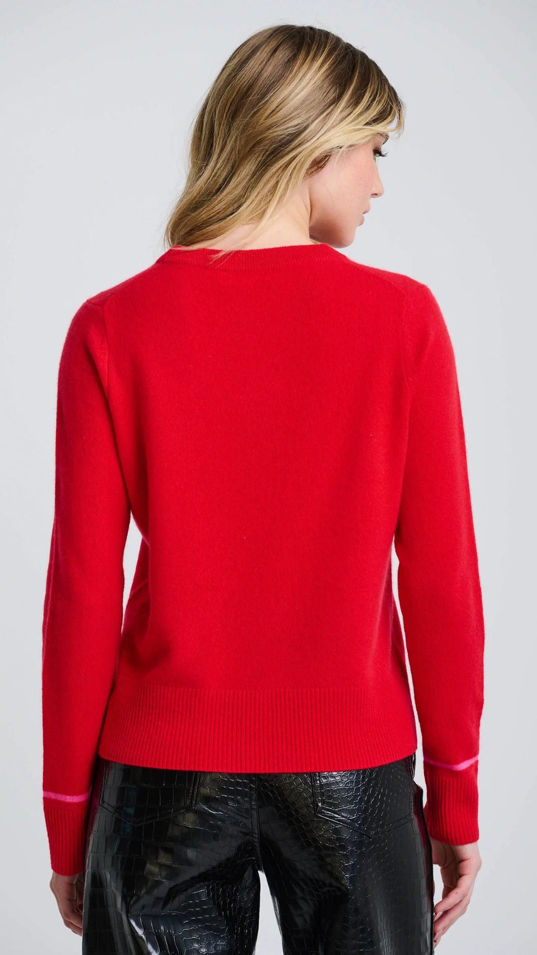 The Hot Toddy sweater brings playful charm to premium Cashmere. A classic crew neck features intarsia lettering at front and contrast stripe accents above the cuff. Polished with ribbed trim, this piece blends comfort with cozy and hot with toddy!