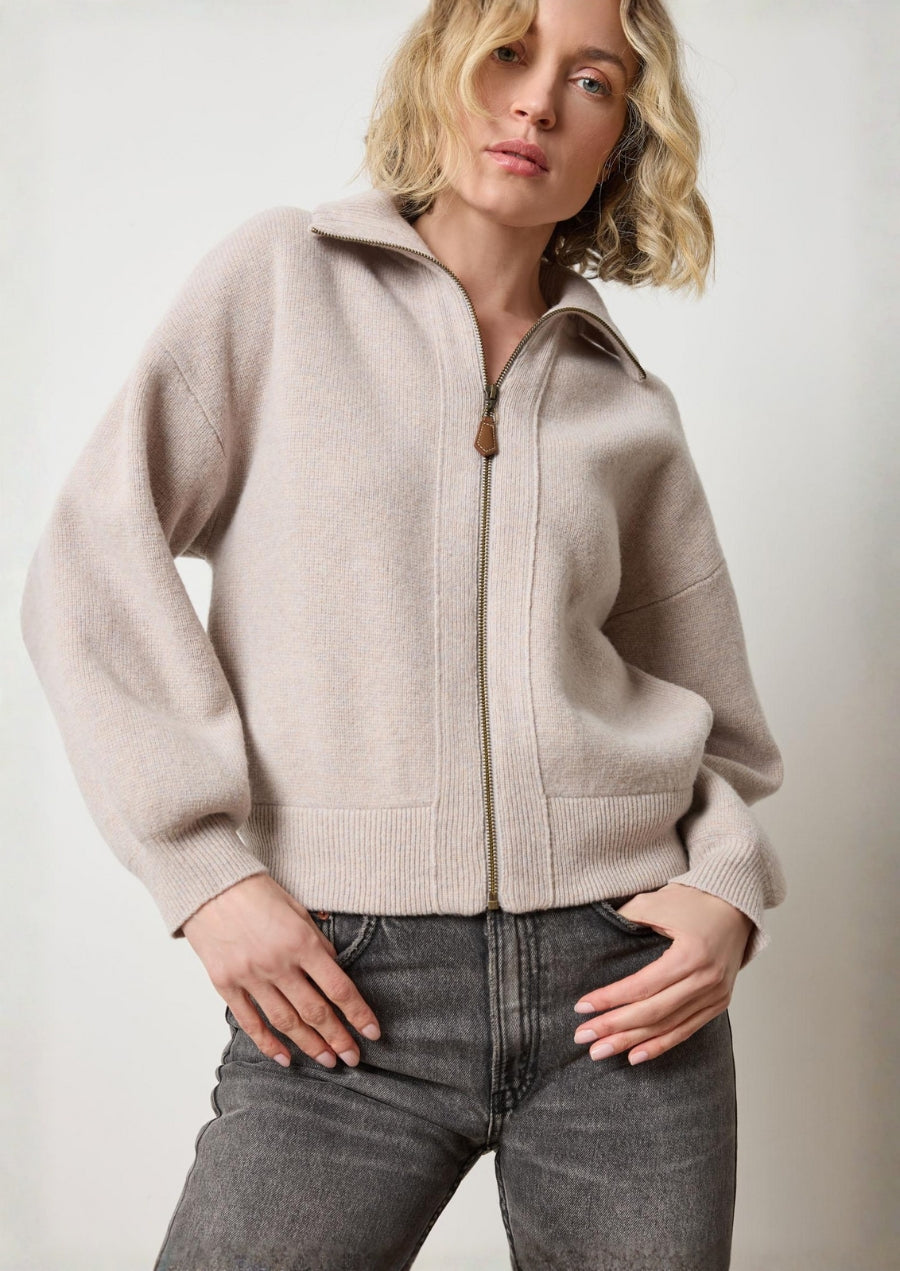 The Zip Front Bomber in our Felted Knit, made from soft extra fine merino wool, goes through a special washing process to create a warm yet breathable sweater. This sweater jacket blends classic style with modern proportions, featuring side seam pockets, a collar, and a leather zipper pull for a refined touch. The slightly shorter length, blouson bottom, and wider shoulders give it a relaxed, effortless look, making it the perfect balance of structure and ease.